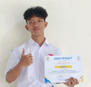 Rafiq berhasil meraih Juara 1 LKS Graphic Design Technology tingkat Kabupaten berkat kerja keras dan bimbingan guru dan akan maju ke tingkat provinsi dalam waktu dekat, tetap semangat dan belajar keras.